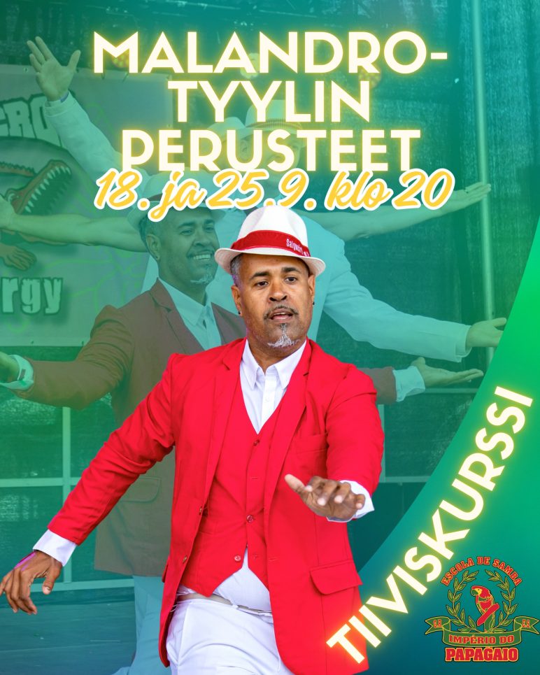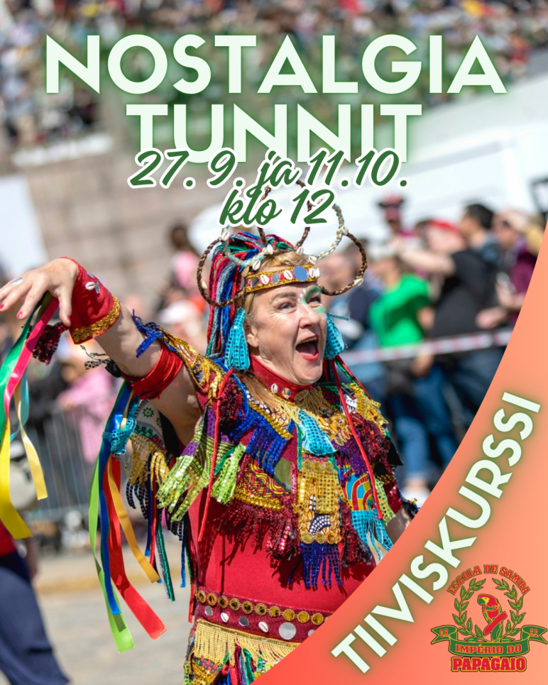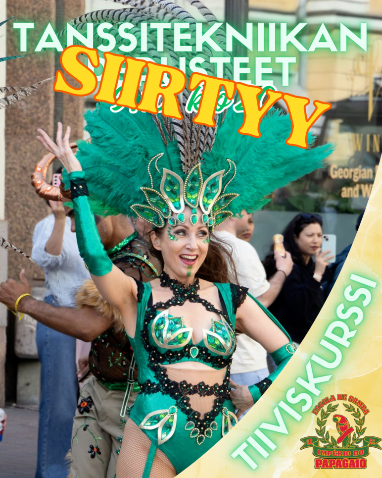 Järjestämme kaikille tanssin harrastajille avoimen Esiintyvä ryhmä 1:n hakutilaisuuden to 9.10.2025 klo 18.45-19.45 sambakoulu Império do Papagaion tiloissa (Oksasenkatu 1, Helsinki).